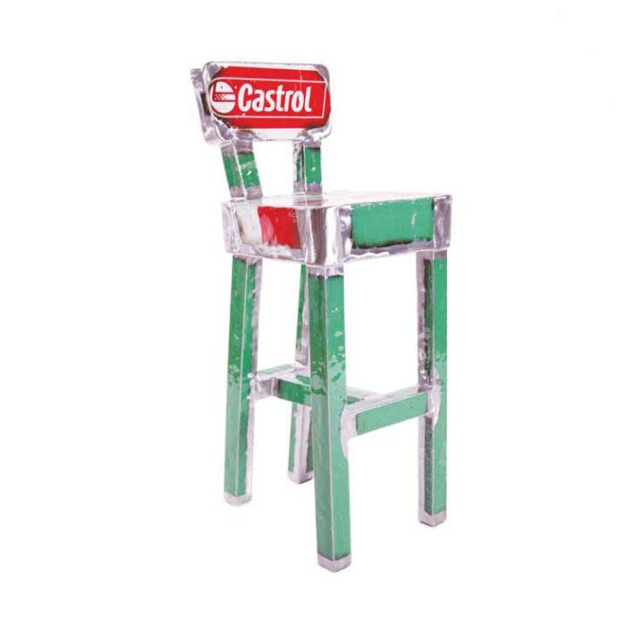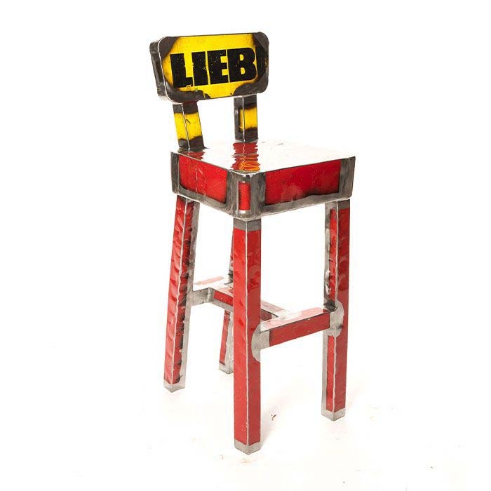 Sgabello realizzato interamente con lamiera di recupero e finitura trasparente lucida antiossidante. Ispirato alla sedia DORA. L’intera struttura non possiede nessun supporto ausiliare interno, non vi è nessun telaio sul quale la lamiera è applicata ma è la lamiera stessa a formare un telaio auto portante.