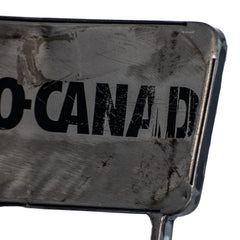 Sedia con telaio in tubolare metallico ed applicazioni in lamiera recuperata nella seduta e nello schienale.